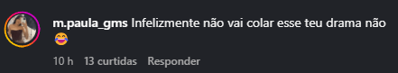 Mas foi no perfil do assessor Mateus que a população grajauense escancarou a verdade que ele tentou esconder: a encenação falhou. Comentários como o de @m.paula_gms ironizaram o drama apresentado: “Infelizmente não vai colar esse teu drama não.” Outros foram ainda mais contundentes, como @joeder1: “Rapaz, o que tu queria provocando com esse teu comportamento Mateus? […] Tá feio esse comportamento.”