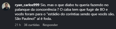 Houve quem denunciasse a premeditação da confusão: “Isso aí foi de caso pensado”, escreveu @karla_oliveira_123. Já @taty_sousa5 foi categórica ao dizer que Mateus “não é flor que se cheire” e que Grajaú está vendo “quem realmente vocês são”. Em outro comentário, @romariofeitosabarros, que diz conhecer Mateus desde a infância, lamentou: “Esse homem não muda nunca.”